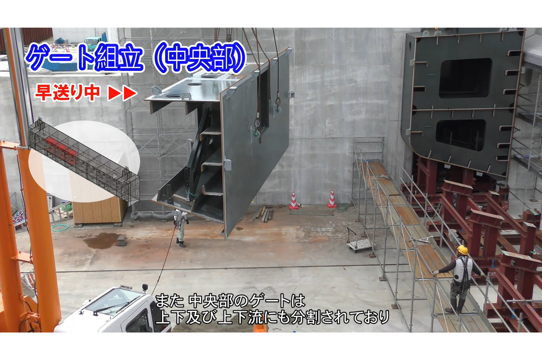 扉体製作動画:馬込川水門現場にゲートがやってきた!